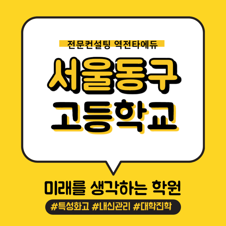 서울동구고등학교, 어떤 학교일까요? 서울동구고등학교는 1942년에 설립되어 오랜 전통을 자랑하는 학교로 금융·콘텐츠·디자인·공연 분야를 중심으로 실무 능력과 진로 경쟁력을 함께 키우는 특성화고등학교입니다. ✔️서울형 마이스터고 선정 ✔️디지털 선도학교 선정 ✔️고졸자 후속관리 선도학교 단순히 “취업만을 위한 학교”가 아니라 취업과 진학을 모두 고려한 진로 설계가 가능한 특성화고라는 점이 서울동구고의 가장 큰 특징입니다. ❓ “ 특성화고면 실무만 잘하면 되지 않나요? ” 많은 학생·학부모님들이 자격증만 있으면, 실습만 잘하면 취업이나 대학 진학이 가능할 거라 생각합니다. 하지만 현재 특성화고 입시·취업 구....... <img src="https://blogthumb.pstatic.net/MjAyNjAyMDNfMjEx/MDAxNzcwMDgxNzA1NjYz.oPd6ZjOL1Z-kTkGP51yae7S7i8yS8SMN7nm31ftARBYg.aMTmLza83AUBs26TAn9egS2tCm01lPn7aPziqICL83cg.PNG/%BC%AD%BF%EF%B5%BF%B1%B8%B0%ED%B5%EE%C7%D0%B1%B3.png?type=s3" />