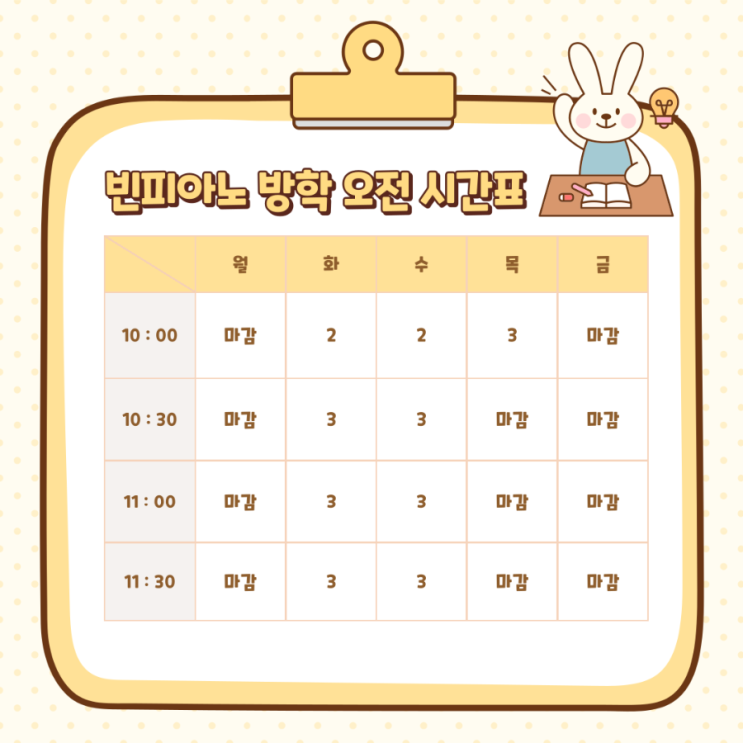 관양동피아노 | 빈피아노 방학 오전 레슨 시간표