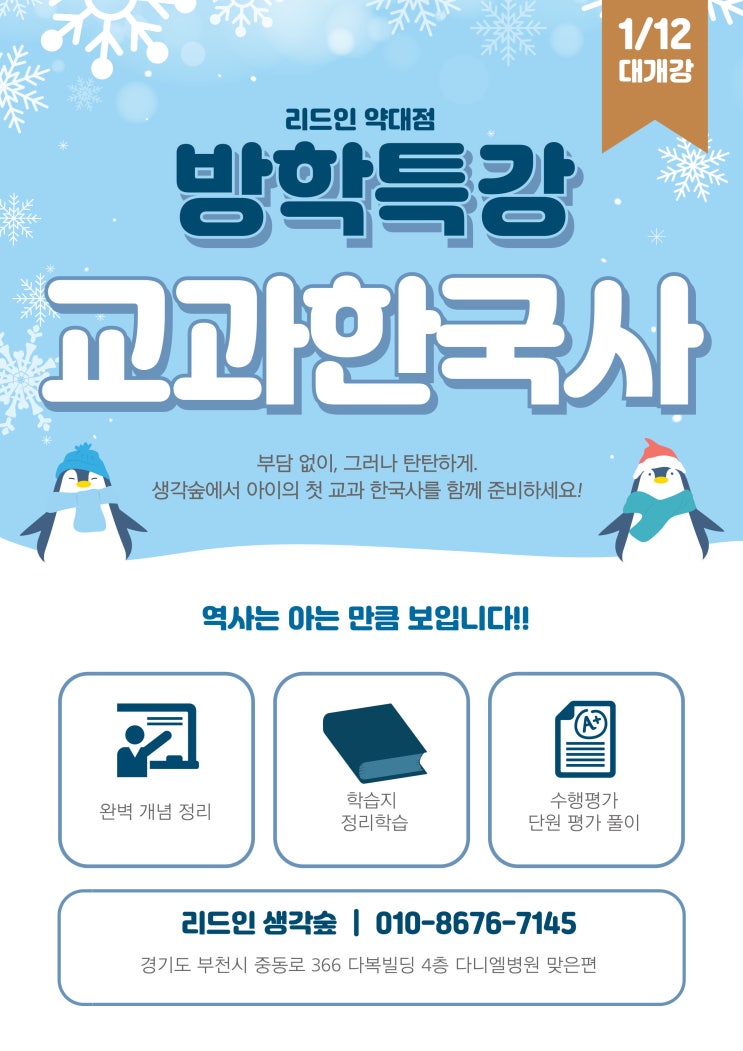 [ 부천 리드인 약대점- 독서논술 국어 학원] 아이들이 이해하는 한국사, 겨울방학부터 차근차근