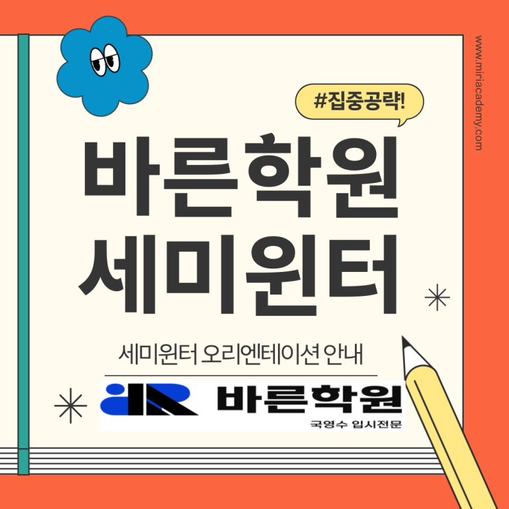 한학년을 마무리하는 기말고사도 마무리 되고, 이제 새 학년을 맞이할 시기입니다. 한해동안 아쉬운 점도 있고, 뿌듯하게 공부해서 좋은 결실을 맺은 우리 친구들도 많이 있을 겁니다. 신중동 국,영,수 중심 바른 학원 에서는 이번 겨울 방학을 맞이하여 새 학기에 성적 향상과 그에 따른 학업 향상을 위한 방학 프로그램을 준비하였습니다. 바른 세미 윈터 남들 하는 아침부터 밤 늦은 시간까지 공부하는게 좋을 수도 있으나, 학생에 맞는 학업량과 공부습관을 기르는것이 중요합니다. 무엇보다도 억지로 끌려서 하는 공부가 아닌 자발적으로 필요를 느끼고 하는 학습이 더욱 필요합니다. 바른 학원에서는 방학 기간을 통해 학습 능력 향상과 스....... <img src="https://blogthumb.pstatic.net/MjAyNTEyMThfNTEg/MDAxNzY2MDM5OTY1ODMw.4ehW2JddUMJ33ag57UM4g2kCzvsKooLw2pPqiBbOk9kg._hVC2dOQNrA-bKB8qA06ln7pg8O0edLy3xlVuzWbMX4g.PNG/001.png?type=s3" />