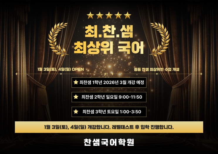 부천 중등 국어 최상위반 최찬샘 1월 3일(토), 4일(일) 개강합니다. #부천국어최상위반 #부천국어레벨수업 #부천국어특목자사고반 #부천중학생국어학원