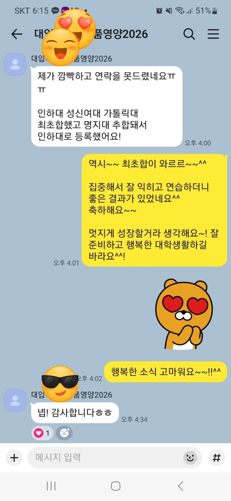 [합격소식]2026인하대성신여대가톨릭대 식품영양학과수시 최초합격 명지대식품영양학과수시 합격 에이블트리스피치
