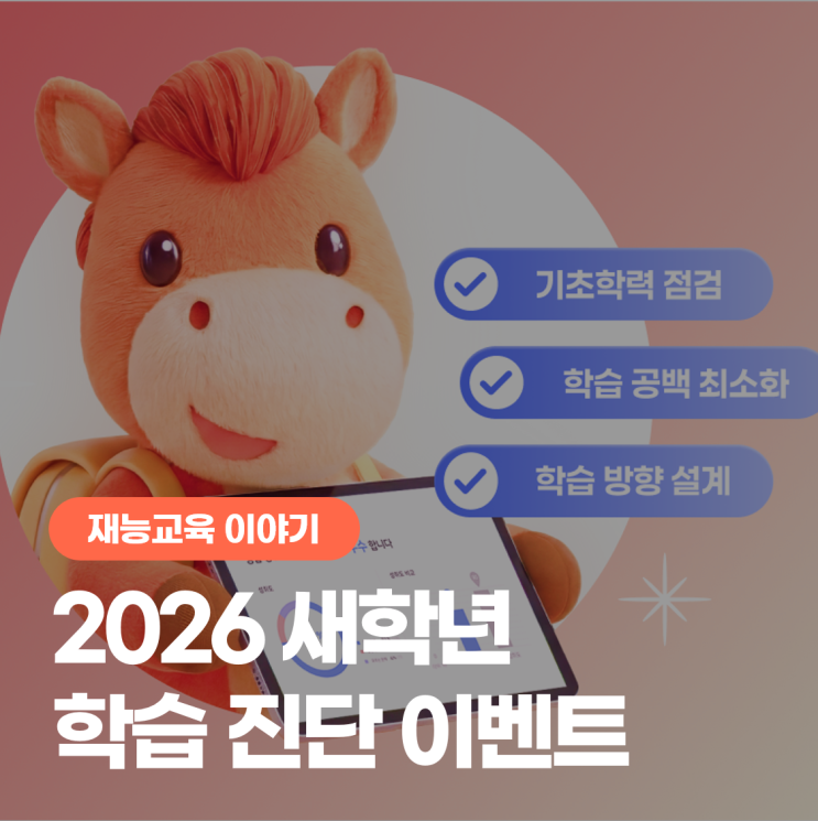 새학년 학습, 어디서부터 준비해야 할지 고민 중이신가요? 그 고민을 덜어드리기 위해 재능교육이 학습 점검 이벤트를 준비했습니다! 재능교육의 정밀 학습 진단 시스템과 재능선생님의 맞춤 상담으로 ✅기초학력 점검 ✅학습 공백 최소화 ✅학습 방향 설계까지 새학년 새학기 완벽 준비! 유아부터 중학생까지, 새학년을 더 자신 있게 시작해 보세요 ☀️2026 새학년 학습 진단 이벤트☀️ 학습 진단 & 다이소 상품권 받자! 클릭! 이벤트 참여하기 새학년 학습 진단도 받고 다이소 상품권으로 새학년 학용품 준비까지 한 번에 준비해보세요! 참여 안내 및 혜택 ✦이벤트 대상 : 유아 ~ 중학생 ✦이벤트 기....... <img src="https://blogthumb.pstatic.net/MjAyNjAxMTZfMjQw/MDAxNzY4NTQ3NzAzMTY3.AVJJAH7Z-KpAYJc5FjJAjE926SjAlzdmUDUWw2DTSFwg._ah6iXZA9tJp-3k66O1MKjVaTLRFsN7J4pYsZ_6SwP8g.PNG/%B1%D7%B8%B21.png?type=s3" />