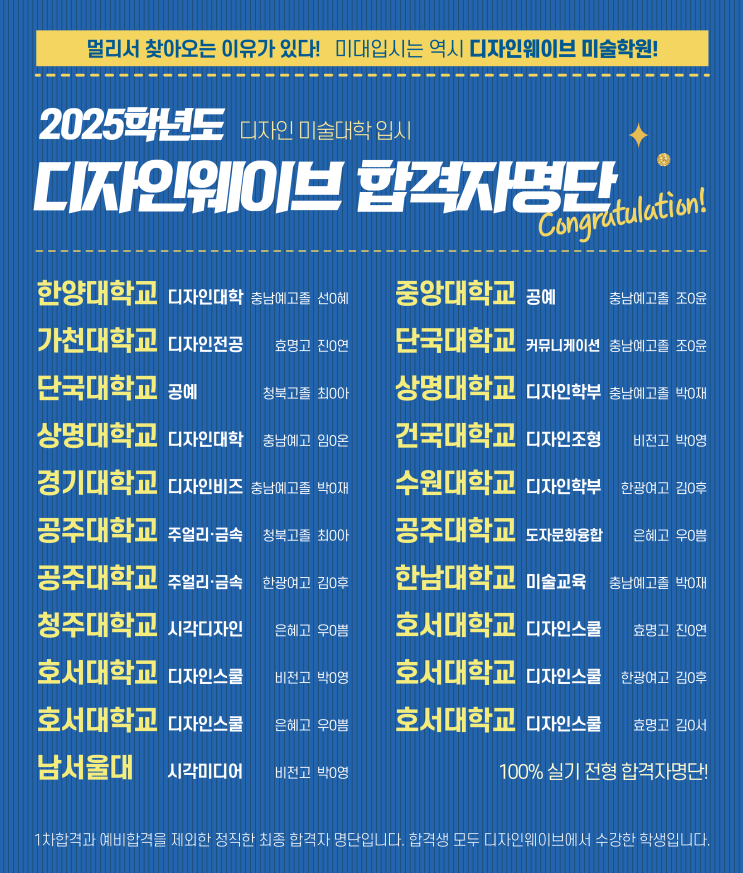 2025학년도 수시/정시 디자인웨이브미술학원 총 합격자명단!