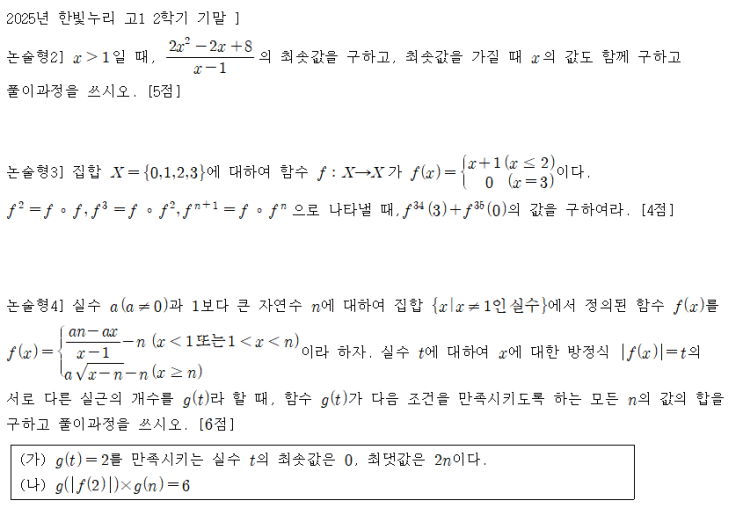 전체적으로 문제는 깔끔하고 좋은 문제를 출제했습니다. 학생들은 서술형4번이 가장 어려운 문제라 생각됩니다. 서술형4번을 푼 학생은 명문대 진학 가능한 학생입니다. https://www.youtube.com/watch?v=g3GXFrQXuZc <img src="https://blogthumb.pstatic.net/MjAyNTEyMjNfMTA0/MDAxNzY2NDY2Nzc0ODc3.hzwf8YXJBCjnOAWMn7mvzjwS3f0c2s8tSyhMFu5Zml0g.Th7WrwtzxHgCLxh3ga8ni9LykfvzICQoz3WeaH2Fzf0g.PNG/image.png?type=s3" />