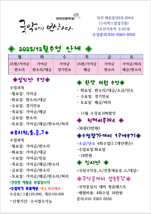 2025년 12월 수업안내입니다