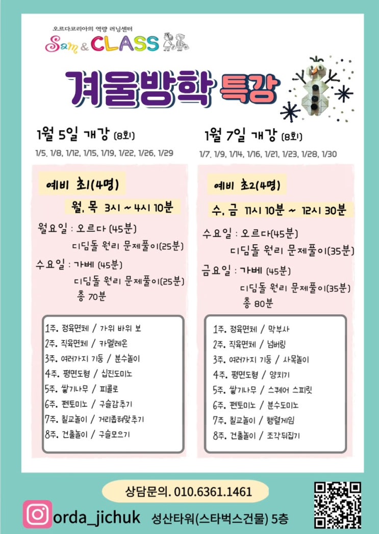 가베, 오르다 겨울방학특강[지축가베, 삼송가베, 신원동가베]