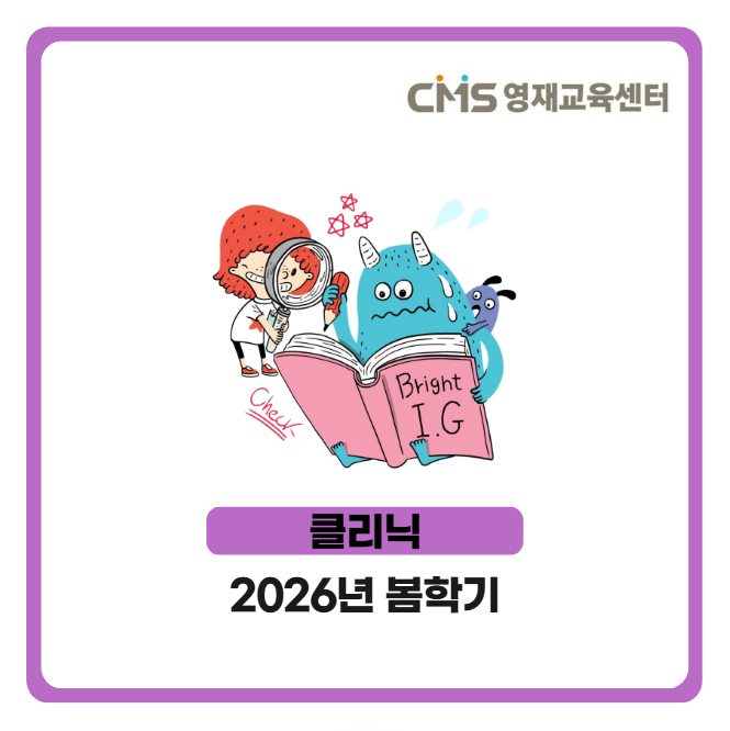 안녕하세요 일산쌤입니다. 3월 봄학기가 시작 되었는데요. 이번 봄학기 클리닉 2차 안내입니다. 클리닉이란?! 선생님이 강의실에 상주하며 소규모 인원으로 1:1 밀착 케어하는 워크북(과제)&아이러닝 숙제를 하는 수업입니다. ▶ 대상: A레벨~10레벨 학생 ▶ 각 반 12명 정원 (선착순 마감) ▶ 1차 운영기간: 4/6(월) ~ 4/24(금) 아래 요일 중 택1 ▶신청 방법: 네이버 예약진행 ▶참고 사항 : 첫째날을 클릭하여 신청하시면 한달 회차가 모두 신청됩니다. 당일 취소는 노쇼로 간주하여 다음달 클리닉 신청 불가. 경기도 고양시 일산동구 일산로 226, 선덕빌딩 4층 (주)크레버스 영재교육센터 일산 제1지점(씨엠에스학원) 031-994-1212 등록....... <img src="https://blogthumb.pstatic.net/MjAyNjA0MDFfMjE5/MDAxNzc1MDI4MTkzOTk3.jAcVu504nrZAP1u6DV2-8mrQawWP56nUx48Iu0Fk25Mg.1ndsJjjHWixTNVp4_1FYdmOs28e8IHvdc0LhyX8r8kcg.PNG/image.png?type=s3" />