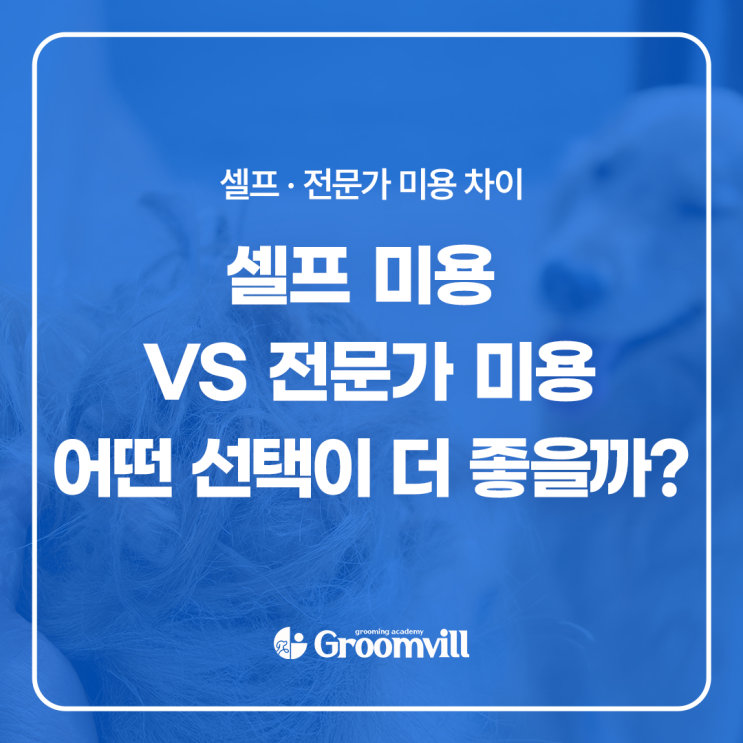 안녕하세요 펫뷰티 교육의 선두 주자 그룸빌애견미용학원입니다. 강아지 미용을 할 때 한 번쯤 직접 해줄지, 전문가에게 맡길지. 고민하게 되는 순간이 다들 한 번 쯤은 있으셨겠죠? 저도 마찬가지입니다 요즘은 셀프 미용 정보를 쉽게 접할 수 있어서 보호자가 직접 시도하는 경우도 많아졌죠. 하지만 같은 미용이라도 결과는 꽤 크게 달라질 수 있습니다. 그럼 오늘은 셀프 미용과 전문가 미용의 차이를 안전성과 완성도 중심으로 정리해보겠습니다! 셀프 미용의 장단점 우선 셀프 미용의 장단점부터 알아볼까요? 셀프 미용의 가장 큰 장점은 반려견이 익숙한 환경에서 편안하게 진행할 수 있다는 점이 가장 크게 와닿지 않을까 싶습니....... <img src="https://blogthumb.pstatic.net/MjAyNjA0MDJfMTEy/MDAxNzc1MTEyODYyOTI5.06QoVVBqaEoFgE88cEt183UW5FryBTdY39030TdR8sQg.G-KKJcg3DfRnJ8FIliJyhzZHDSegevD1gH-rnBLg054g.PNG/1.png?type=s3" />