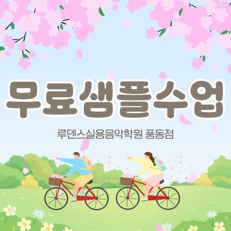 안녕하세요 루덴스실용음악학원 풍동점 입니다 길가에 벚꽃이 피어나기 시작하고, 공기에는 새싹 향이 은은하게 퍼지면서 걷기만 해도 기분이 좋아지는 4월 입니다! 새롭게 시작하는 4월의 한 달 저희 루덴스에서 4월 이벤트를 가지고 왔습니다!^^ 루덴스실용음악학원 풍동점 4월 이벤트 봄은 시작의 계절이니까, 누구나 부담 없이 음악을 경험해볼 수 있도록 4월 한정 무료 샘플 수업을 준비했습니다! 4월에 음악을 시작하면 좋은 이유 ✔ 감수성이 풍부해지는 계절 ✔ 새로운 루틴 만들기 좋은 타이밍 ✔ 아이들의 표현력과 자신감이 자연스럽게 올라가는 시기 봄에 시작한 음악은 이상하게도 조금 더 오래, 그리고 더 즐겁게 이어지는 경우가....... <img src="https://blogthumb.pstatic.net/MjAyNjA0MDNfMTA3/MDAxNzc1MTkzMzgxMDMy.vNDGkSzVYL_-YENZiUxEh9Cqxj04je45_G4Js0dNYV8g.BtUikNV8Zr58giPm2zVvBZeInue1uobvi2bLQMgKp4Ig.JPEG/output%A3%DF4167332191.jpg?type=s3" />