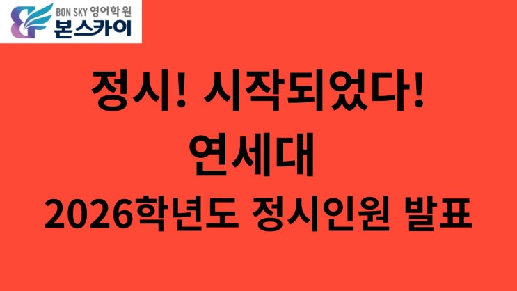 [후곡 본스카이 영어학원] 정시!! 시작되었다! 연세대 2026학년도 정시 최종 인원 발표