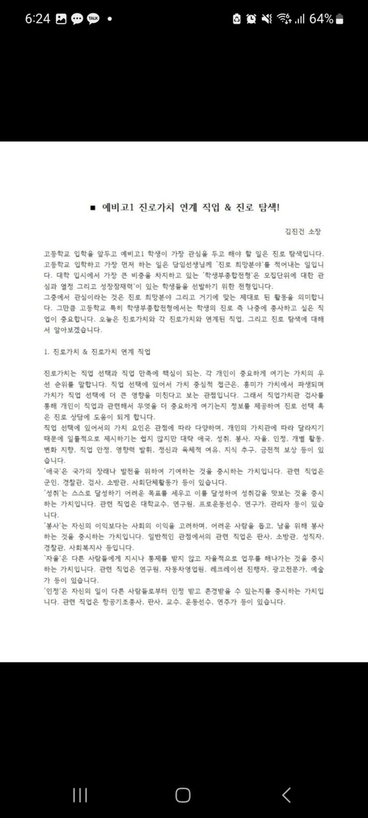 ◼ 예비고1 진로가치 연계 직업 & 진로 탐색! 고등학교 입학을 앞두고 예비고1 학생이 가장 관심을 두고 해야 할 일은 진로 탐색입니다. 고등학교 입학하고 가장 먼저 하는 일은 담임선생님께 ’진로 희망분야‘를 적어내는 일입니다. 대학 입시에서 가장 큰 비중을 차지하고 있는 ’학생부종합전형‘은 모집단위에 대한 관심과 열정 그리고 성장잠재력‘이 있는 학생들을 선발하기 위한 전형입니다. 오늘은 진로가치와 각 진로가치와 연계된 직업, 그리고 진로 탐색에 대해서 알아보겠습니다. (입시 메카 김진건 소장 펌) #일산대표사탐학원 #일산중등고등사회역사수행 #일산필사회역사학원 #사회역사한국사내신 #필사회역사학원 <img src="https://blogthumb.pstatic.net/MjAyNTEyMjZfMjU2/MDAxNzY2NzQxMDkwODMy.fgQWIZIpG_kR3wbIK8UOAsyzv51rfOmq6MmxlotG1RMg.CAjIQ3bBCILhuarJvK3ppYNXsrE7wcqC13v_cXqhXpwg.JPEG/900%A3%DFScreenshot%A3%DF20251226%A3%DF182440%A3%DFBAND.jpg?type=s3" />