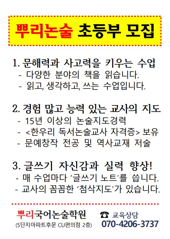 [모집공고] 뿌리논술학원 초등부 독서논술