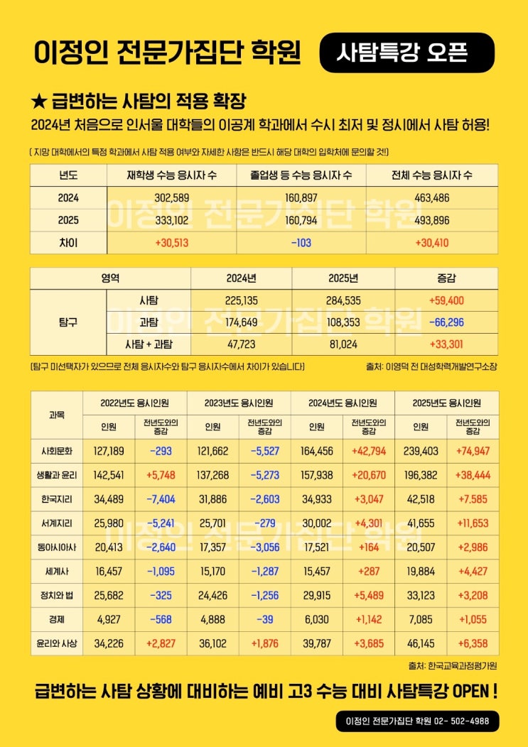 과천 26년 전통 이정인 전문가집단학원 - 사탐런 !!!대비 - <사탐 윈터특강> 개강