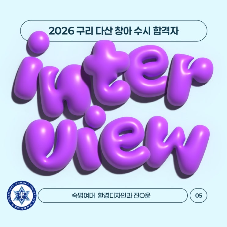 안녕하세요:) 구리 다산 입시미술학원 구리 다산 창조의 아침입니다!! 여느때처럼 여대를 참 잘보내는 구리 다산 창조의 아침. 오늘은 숙명여대 수시 합격자 3명 중 한명의 인터뷰를 들어보겠습니다~ 오늘의 인터뷰 주인공은 바로 진0윤 학생 ㅡ !! 어렸을 때부터 미술을 좋아하긴 했지만 '미술은 돈이 안 된다.'라는 인식을 뒤엎고 할 만큼 미대 진학이 간절하지는 않았고, 미술은 평생 취미로만 할 거라 생각했어요. 그런데 중학생 때 뮤지컬을 보러 다니며 공연 세계에 너무 매료되어버렸고 공연 창작진이 되어보는 걸 도전해 보지 않고 계속 관객으로만 남는다면 후회하게 될 것 같다는 생각이 들었습니다. 공연을 구성하는 여러 직....... <img src="https://blogthumb.pstatic.net/MjAyNjAxMDhfMjIx/MDAxNzY3ODUxMTA2NzU3.aJT0gzfQlsFK6_9iGtgjseKEAoBpvUBU_c2f5uNaBlcg.-B4cz3Whp7qyZUmGm0L0HKaeuwsZ5MCuTCgmWU3mjjwg.JPEG/%BC%F7%B8%ED%BF%A9%B4%EB_0.jpg?type=s3" />