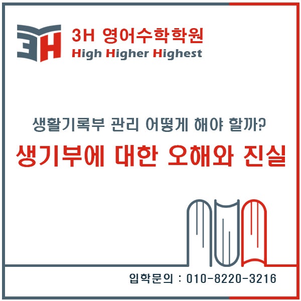 안녕하세요. 배곧 맞춤형 교육을 실천하는 3H영어수학학원입니다. 배곧고등학교 맞은편, 다이소 뒷 건물 현대프라자 2층, 3층에 자리잡고 있습니다. 오늘은 고등학교 1학년 학생들을 위해 생활기록부 관리에 대한 팁을 드리고자 합니다. 고등학교 1학년이 된 나춘기 학생. 고등학생이 되면서 공부에 대한 부담감과 달라진 환경에 적응이 쉽지 않다. 무엇보다 힘들게 하는 것은 수업 외 활동이다. 동아리와 봉사활동 뿐 아니라 직업 체험 활동 등 너무 많다. 하지 말고 공부나 할까? 고민도 해 보지만 ‘생기부에 들어간다’는 선생님 말씀을 들으면 해야만 할 것같다. 그래서 오늘도 직업체험특강을 듣기 위해 학원에 빠진다. 어쨌든 생기부에 내....... <img src="https://blogthumb.pstatic.net/MjAyNjA0MDJfMTU3/MDAxNzc1MTIyNDA0NDMz.c19KC4W7dV3SuGB6ifndUoQNcvPzefB7VAecyLcTEeIg.jMMmNECqZNzRGDdfoQ186xFi5xHm9HghRN75pDWXIKgg.JPEG/%BB%FD%B1%E2%BA%CE%BF%C0%C7%D8%BF%CD%C1%F8%BD%C7.jpg?type=s3" />