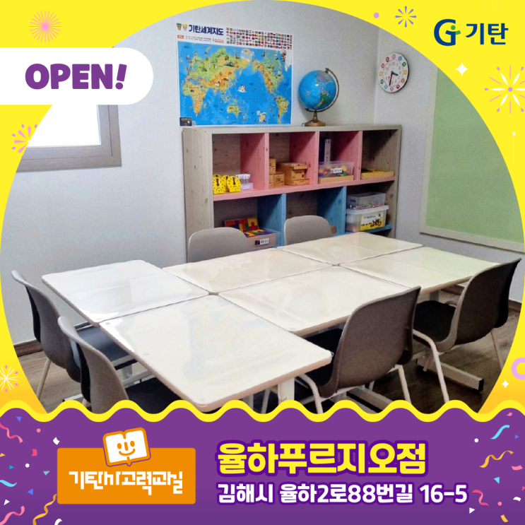 안녕하세요. 유치, 초1·2·3 전문 교육 기관 기탄사고력교실입니다. 오늘은 김해 지역 학부모님들께 반가운 소식을 전합니다. 바로 김해시 율하동 기탄공부방이 새롭게 문을 열었습니다. 이번 오픈을 준비하며 “아이들이 가장 편안하게 머물며 배우는 공간”을 만드는 데 신경을 썼습니다. 따뜻한 구조와 아이 중심 배치, 율하동 기탄공부방의 공간 소개 율하동 기탄공부방에 들어서는 순간 가장 먼저 느껴지는 것은 정돈된 교실 인테리어에서 느껴지는 안정감입니다. 전체적으로 화이트 톤으로 깔끔하게 정리된 공간, 여기에 자연스러운 우드 컬러 포인트, 아이들의 눈높이에 맞춰 배치된 교구와 교재가 편안함을 줍니다. 특히 공간 구성에서 가....... <img src="https://blogthumb.pstatic.net/MjAyNjAxMjNfMjIz/MDAxNzY5MTU4MzkzODcw.m3eRbgeMhubNzIR98MPg7bzTmPF1QPVkEBofl3v7xBwg.Wye3055k3JOpufEUxREFhH0j5aEeB0m7zMIU73dewlUg.PNG/2601_15_%C1%A4%B9%E6%C7%FC_%C0%B2%C7%CF%C7%AA%B8%A3%C1%F6%BF%C0%C1%A1.png?type=s3" />