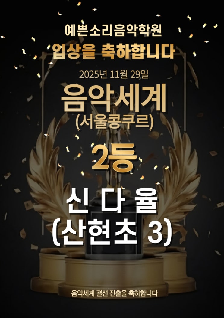 2025년 음악세계 서울 콩쿠르 3학년 2등