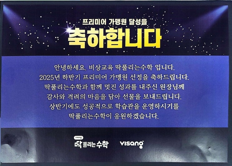 딱풀리는수학 프리미어가맹 달성을 축하합니다