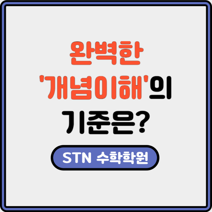 안녕하세요 항상 최선을 다하는 STN 수학학원입니다. 다양한 학생들과 수학 상담을 하면 같은 질문을 하곤 합니다. 개념은 아는데 문제를 못 풀겠어요 스스로 생각하기엔 이미 다 알고있는 거 같은데 막상 문제를 마주하면 어디서부터 손을 대야하는지 막막한 경우가 많은데요. 이번 글에서는 개념을 알아도 문제를 못푸는 이유와 어떠한 방식으로 공부해야하는지, 알아보겠습니다. 1. 학생이 말하는 '개념을 안다'의 의미 이 말의기준은 생각보다 낮은 경우가 많은데요. 보통 교과서와 개념문제집에 나온 정의를 읽어봤거나, 수업 시간에 공식을 따라 적어본 경험을 의미합니다. 이렇게 되면 공식의 이름과 형태는 기억하지만, 왜 그....... <img src="https://blogthumb.pstatic.net/MjAyNjAyMDZfMjQz/MDAxNzcwMzU3MTY3OTA1.zPT0rTFpIpU0LMHEbv3ByfU1GOZwir-Z7Ven1qxI66og.m4BlBbu-vAFlG0q57baTIOko64n1jVx3x2nx2pve2Asg.PNG/%C7%A5%C1%F6_%B0%B3%B3%E4%C0%CC%C7%D8.png?type=s3" />