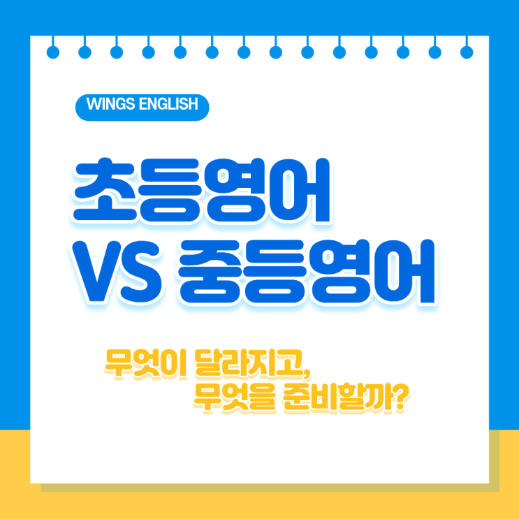 안녕하세요! 영어 성적이 아닌 영어 실력을 쌓는 망월동 초중등 영어전문학원 윙스잉글리쉬입니다. "영어로 무슨 말인지는 알겠는데 문법 용어가 너무 어려워요." 초등학교를 졸업하고 중학교에 입학하면 영어 공부의 성격이 완전히 바뀝니다. "초등 영어와 중등 영어" 무엇이 다르고 어떻게 잘 적응해 나가야하는지 핵심 차이점과 대비법을 정리해보겠습니다. 1. 쏟아지는 단어량과 문법의 '체계화' 초등영여가 '의사 소통'과 '친숙함'에 집중했다면, 중등영어는 '정확성'의 단계로 진입합니다. 어휘: 중등 영어로 넘어가면서 '추상적이고 학문적인 단어'가 급격히 늘어....... <img src="https://blogthumb.pstatic.net/MjAyNjAxMTBfMjky/MDAxNzY4MDE5MTI0NTE1.ZiKcxMpYj7ZnoXuSeesZ6V3cGWRaNJvWomF2tLTtnKMg.WbY5HrJv7LeomDs9TGG2B5IGvVl6o_nGNRNlmNDDHFYg.PNG/%C1%A6%B8%F1%C0%BB_%C0%D4%B7%C2%C7%D8%C1%D6%BC%BC%BF%E4._%281%29.png?type=s3" />