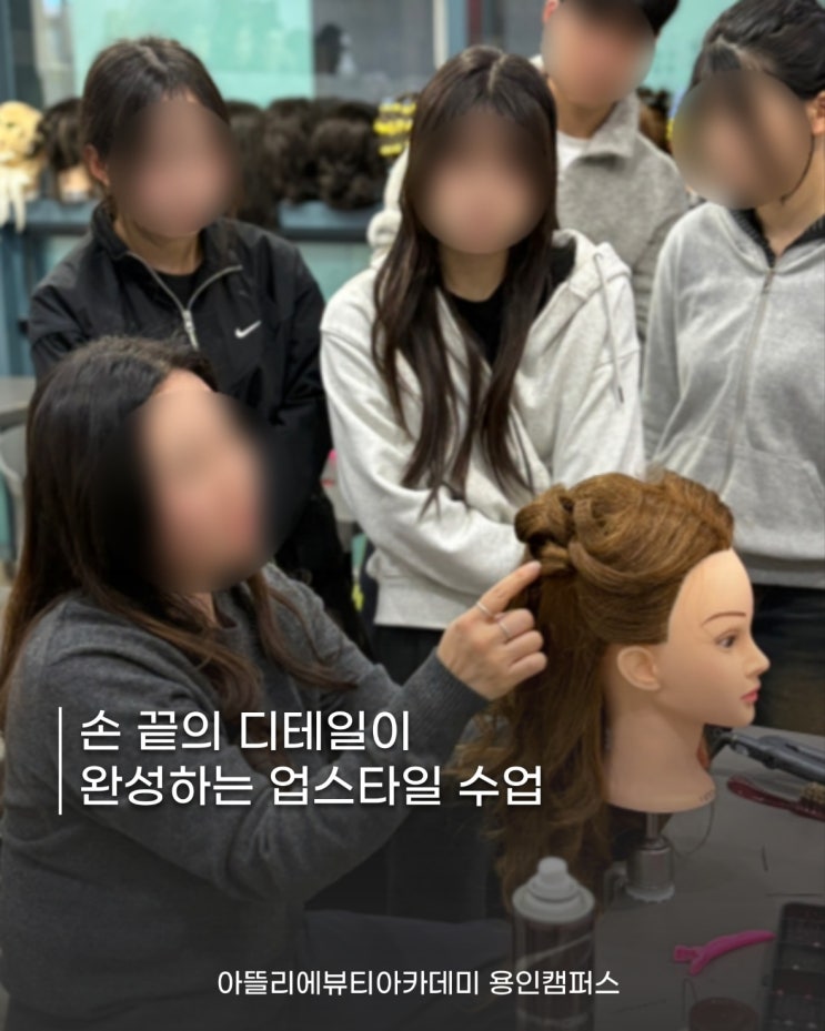 여러분, 안녕하세요~! 아름다움과 뷰티 트렌드를 창조하는 교육 용인 아뜰리에뷰티아카데미입니다. 기온이 올라가면서 벚꽃이 많이 피었습니다~ 예쁜 사진 많이 찍으셨나요?? 저희 학원에서도 꽃처럼 예쁜 작품들을 만들기 위해 수강생들의 업스타일 수업을 진행 하였습니다! 교수님께 직접 배우며 꼼꼼한 피드백까지 받을 수 있는 업스타일 수업! 이론 뿐만 아니라 실습 위주의 수업으로 진행되기 때문에 직접 손으로 익히며 실력을 키울 수 있습니다. 메이크업을 전공으로 하고 있는 수강생들도 필수적으로 배우는 헤어 수업이 업스타일인데요! 메이크업과 헤어를 같이 연출해야하기 때문에 현장에서는 메이크업뿐만 아니라 헤어 스타일링도 할....... <img src="https://blogthumb.pstatic.net/MjAyNjA0MDZfMTgw/MDAxNzc1NDUwNDgwNzYy.aRuZ7MCfv0P0aUrPRJXhJs60PKFZML_l14KtVwvIt5og.uT7e8dbIE7iWC2SpyiEwL8DXr7kH0m2-9JQ3Xo2b71Mg.JPEG/KakaoTalk_20260406_133843723.jpg?type=s3" />