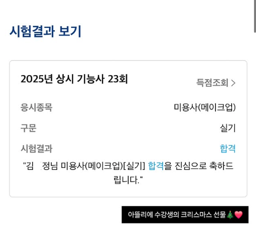 [용인미용학원] 크리스마스 선물 같은 합격 소식!!