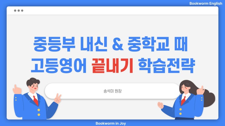 안녕하세요, 북웜인조이 원장 송석미입니다. 지난 12월 진행된 2026 예비중1 학습전략 설명회에 참석해 주신 모든 재원생 학부모님께 진심으로 감사드립니다. 다른 일정으로 참석하지 못하신 학부모님들께서도 확인해 보실 수 있도록 자료와 함께 요약하였습니다. 1부는 중,고등 입시까지 이어지는 성공 학습전략 설명회 2부는 담임선생님과 일대일 간담회로 진행 되었습니다. 설명회 주요내용 중고등 성공 내신 준비 전략 및 2032 변화하는 대입까지 이어지는 학습 전략 설계 로드맵 공유 - 초등에서 중등으로 넘어가는 이 시기가 아이들이 처음으로 ‘실력 차이’가 눈에 보이게 벌어지는 시기이며 격차 대부분이 영어와 수학에서 발생하고 있....... <img src="https://blogthumb.pstatic.net/MjAyNTEyMjdfMjk1/MDAxNzY2ODMzMDA0MDUw.uL2mVPrNZkx2IVPRG38spuWZZHvQAqv8eQSodYUnkmIg.kPVK6IdTqkmWstD7qwcDsosObf0akU3A2ucNXKBLBYMg.JPEG/%BF%B9%BA%F1%C1%DF1_%BC%B3%B8%ED%C8%B8_2026.12.06_1.jpg?type=s3" />