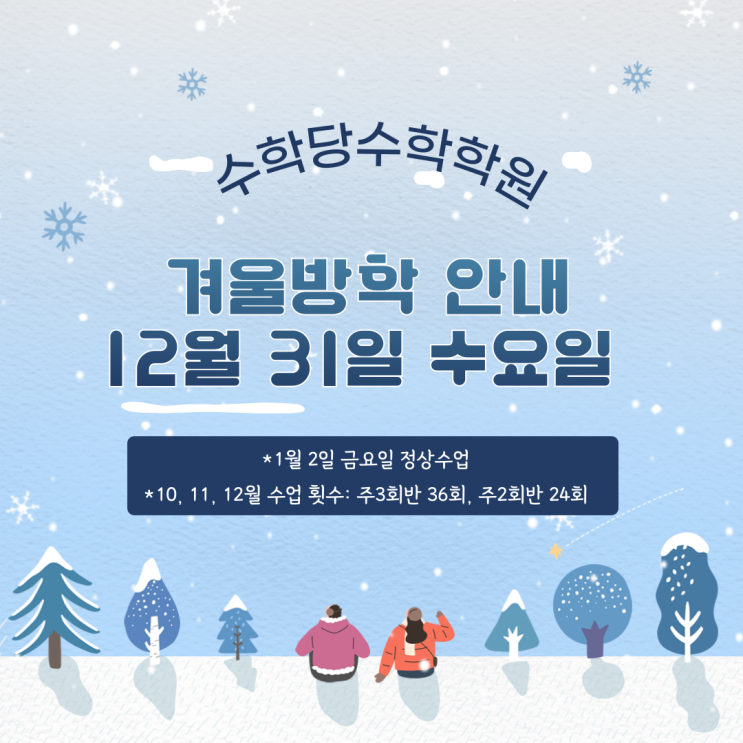 수학당수학학원 연말 학원방학공지(12월31일)