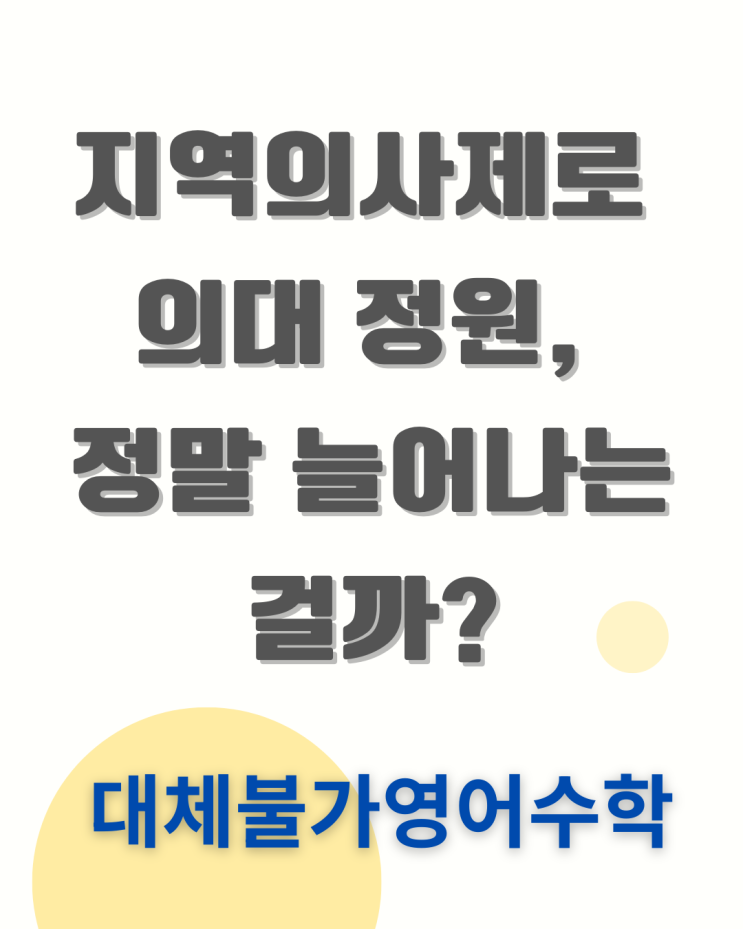 지역의사제와 관련해 정책이 조금씩 바뀌고 있네요.. 지역의사제로 인해 의대 정원이 늘어난다? 이번 의대 정원 확대 논의를 정리해드립니다 최근 의대 입시를 둘러싼 가장 큰 이슈는 단연 **‘지역의사제’**입니다. 이번 의대 정원 확대 논의의 핵심 배경은 ‘지역의사제 도입’입니다. 아래에서 그 구조를 차분히 정리해 드리겠습니다. 1️ 이번 의대 정원 확대, 왜 다시 나왔을까? 우리나라 의대 정원 확대 논의는 처음이 아닙니다. 과거에도 증원 논의가 있었지만 의료계 반발로 중단된 전례가 있습니다. 하지만 최근에는 상황이 달라졌습니다. 지방 의료 붕괴 필수의료 인력 부족 응급·소아·외과 인력 공백 이 문제가 단순한 ‘미래 위험’....... <img src="https://blogthumb.pstatic.net/MjAyNjAxMjNfMTI4/MDAxNzY5MTY1NzI5Mjk2.mxXxiq5IYMSvTsGh2ERc5ePbFnv7vRGHY--Mv-K0VwEg.4Lc1QVBULTTBjlkAZtpYmPh4SpVObMdK2dZWCHiQacEg.PNG/%B3%EB%B6%F5%BB%F6_%BD%C9%C7%C3%C7%D1_%B5%B5%C7%FC_%C4%BF%B9%D6%BC%F8_%C0%CC%BA%A5%C6%AE_%B0%F8%C1%F6_%C0%CE%BD%BA%C5%B8%B1%D7%B7%A5_%B0%D4%BD%C3%B9%B0_%281%29.png?type=s3" />