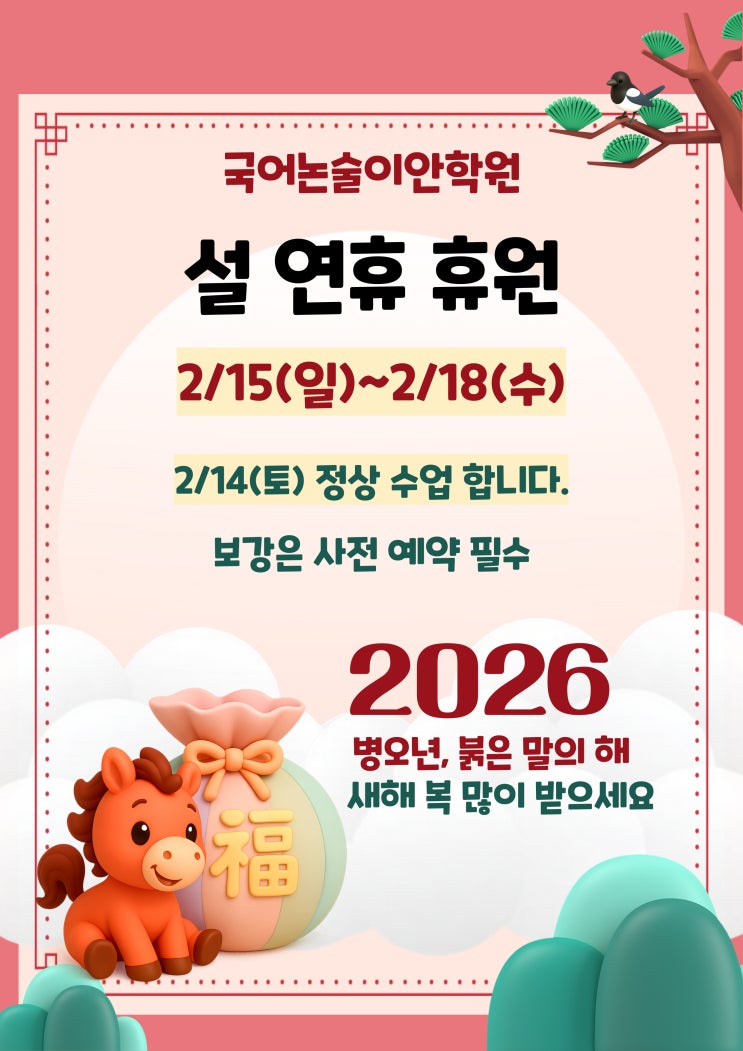 설연휴기간 휴원합니다 2/15(일)~2/18(수)
