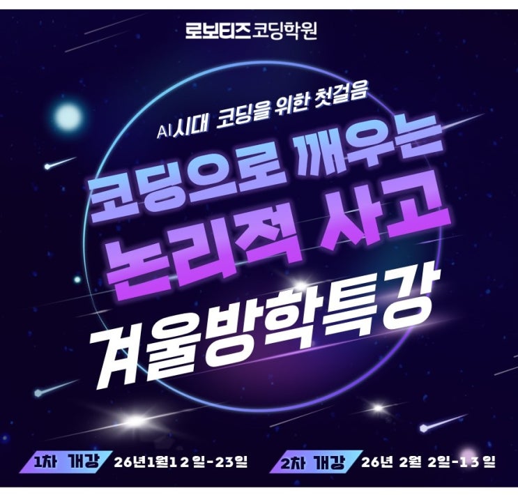 [로보티즈 코딩학원 겨울방학 특강안내] 전국 27개 과고·영재고 AI 전형 일제히 확대! 이제 코딩은 선택이 아닌, 상위 학교 합격의 당락을 가르는 **‘결정적 키’**가 되었습니다. 겨울방학은 2026년 도약을 위한 단 하나의 골든타임입니다. 시간적 여유가 있는 지금이 필수 SW 역량으로 압도적인 차이를 만들 유일한 기회입니다. 로보티즈 특강으로 새 학년을 든든하게 준비하세요! [의정부점] 특강 안내 https://forms.gle/WZJfZ8TWM38N6QEB9 [양주점] 특강 안내 https://forms.gle/Unh9vHd8oSDQoxSp8 <img src="https://blogthumb.pstatic.net/MjAyNTEyMzBfNTgg/MDAxNzY3MDkwNDgyMDM5.BPmKfo-Ix3dX9MTZBO_KMaynzf25S640DUraFp02hRsg.iU2JaFNIfH05XhuCqyiHjvxA52uMSOhIdqbdt84UpMog.JPEG/%BD%BD%B6%F3%C0%CC%B5%E54.JPG?type=s3" />