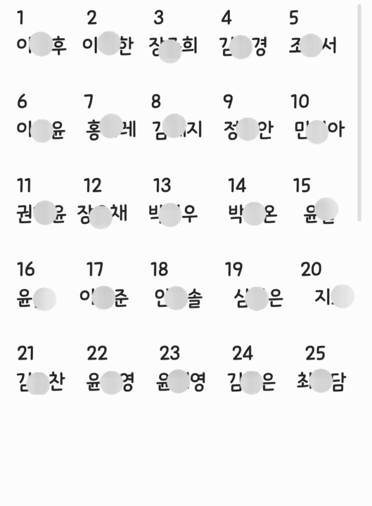 윈썸어학원 2025년 2학기 기말고사 결과입니다~!! 용☆준 100점 김☆영 100점 김☆환 100점 한☆훈 100점 이☆혁 100점 이☆승 100점 류☆후 100점 황☆서 100점 정☆찬 100점 우☆은 100점 이☆은 100점 김☆주 100점 김☆성 98점 문☆이 98점 김☆후 97점 이☆성 97점 허☆준 97점 김☆우 96점 이☆오 96점 문☆영 96점 김☆율 96점 정☆이 95점 김☆민 92점 이☆성 90점 다들 너무 고맙고 수고 많았습니다. 노력하고 땀흘리는 우리학생들의 모습 너무 예쁘고 이렇게 또 한해가 지나갑니다. 2025년도 여러분 덕분에 행복했습니다~