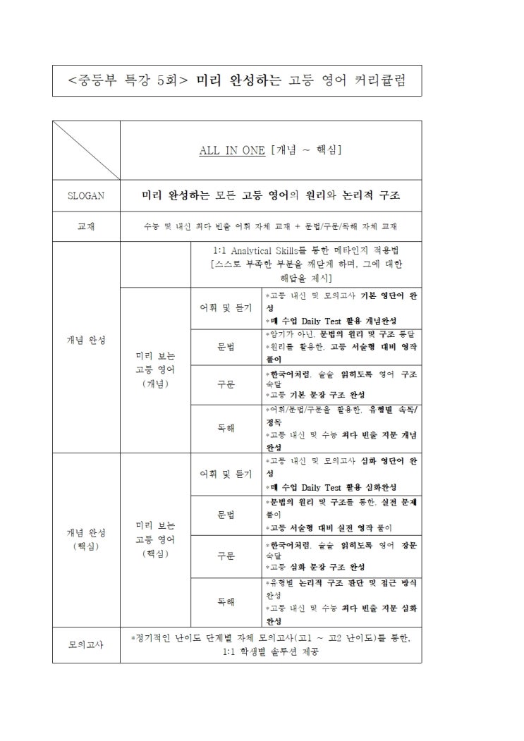 [영어중등특강] 커리큘럼 소개