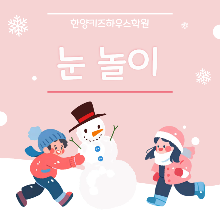 눈이 오면 축구장에서 아이들과 함꼐 눈놀이를 하였어요. 눈도 만져보고 눈도 뭉쳐서 던져보고!! 눈 위에서 즐겁게 눈 놀이를 했어요. 다양한 놀이를 하는 여기는 한양키즈하우스 궁금하신 점은 언제든 한양키즈하우스로 문의해 주세요. ☎️문의 02) 2249 - 6001 한양키즈하우스학원 – 아이들의 성장을 함께합니다! - 놀이학 프로그램 안내 - <img src="https://blogthumb.pstatic.net/MjAyNjAxMTVfMTM0/MDAxNzY4NDg3NDA5OTk5.6sHQm809lM0breCrNdca2JbAptBEtzjY-uD5U_dbVtgg.jcF9NdySW2XPAA-Tx7zYu-GNqXxswPzWcfP5WGLUFKQg.PNG/%C1%A6%B8%F1%C0%BB_%C0%D4%B7%C2%C7%D8%C1%D6%BC%BC%BF%E4._%2812%29.png?type=s3" />