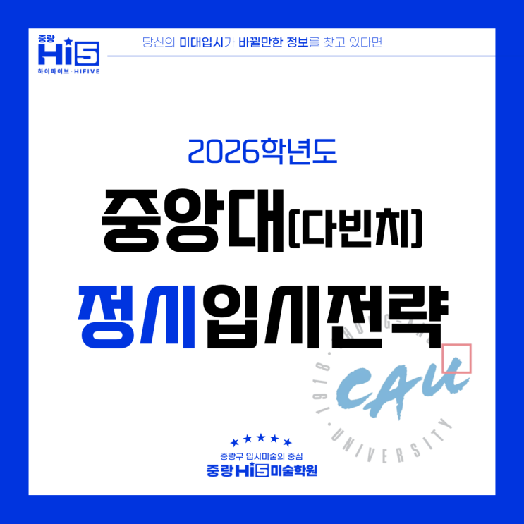 [중앙대 안성 정시편] 정시 지원 전 필독! 학과별 평균 성적 총정리 안녕하세요. 중랑구 대표 미술학원 중랑 하이파이브 미술학원입니다. 오늘은 많은 수험생들이 관심을 갖고 있는 중앙대 안성 정시 실기전형에 대해 알아보는 시간을 가져보려고 합니다. 중앙대, 말이 필요 없는 정말 좋은 학교죠. 곧 다가올 가군을 목표로 겨울특강에 매진하고 있을 입시생 여러분, 끝까지 힘내시길 응원합니다! 오늘 소개해드릴 자료와 설명이 중앙대 안성을 준비하는 학생들에게 조금이나마 도움이 되길 바라며 지금부터 시작해보겠습니다. 수능 반영 교과목 디자인학부 모든 과는 국어 + 사탐/과탐(택1) 이 반영되며, 탐구영역은 2과목 평균을 적용합니다. ....... <img src="https://blogthumb.pstatic.net/MjAyNTEyMjVfMjQ3/MDAxNzY2NjQzMTM2NTY0.DJnweCHLWipAA6h6byoqMncRG8Ur0tYqAGme4VzOaz0g.BGDFq9OoA5sq7QjFBWBaOhT8KtSc9GLdJcEZjZ7fLwEg.PNG/%C1%DF%BE%D3%B4%EB%C1%A4%BD%C3_%284%29.png?type=s3" />