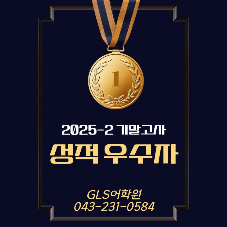안녕하세요, GLS 어학원입니다! 한 학기 동안 열심히 달려온 우리 아이들의 노력이 마무리되는 기말고사가 지나갔습니다. 이번 기말고사는 중학교 2학년 학생들만 응시하여 진행되었으며, 그동안 쌓아온 영어 실력을 점검해볼 수 있는 의미 있는 시간이었습니다. 끝까지 집중하며 시험에 임해준 모든 중2 학생들에게 먼저 큰 박수를 보냅니다. 이번 기말고사에서도 학생들의 노력과 성취를 응원하고자 문화상품권을 전달하며 시상식을 진행했습니다. 성적 우수 학생 명단 우수 성적 학생 시상식 기말고사까지 최선을 다해준 중2 학생들 모두 정말 수고 많았고, 아이들이 스스로 성장해가는 과정을 가까이에서 지켜볼 수 있어 뜻깊....... <img src="https://blogthumb.pstatic.net/MjAyNjAxMjhfMjUz/MDAxNzY5NTc1MDc3NDM4.4OeWT7kFzvih-h6gbcILrTXAROk0ZnSPaAnzh8A3SlQg.g_Sl-H74rh6ZnHSdN3TTQiouXyv_ghrWi-wQgDpin8Ig.JPEG/2025-2_%EA%B8%B0%EB%A7%90%EA%B3%A0%EC%82%AC_%EB%B8%94%EB%A1%9C%EA%B7%3F.jpg?type=s3" />