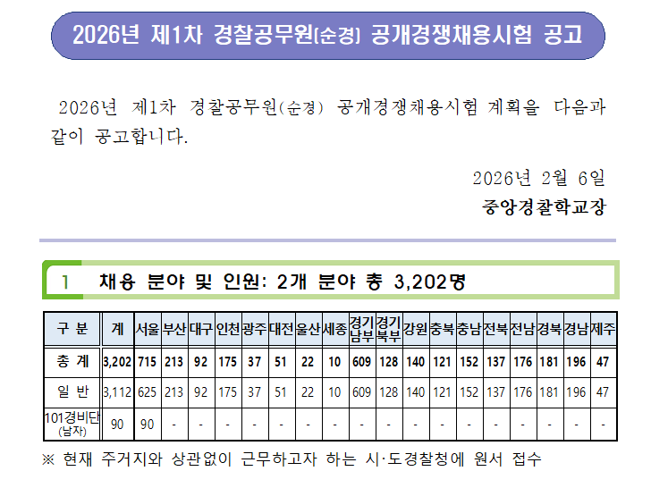 2026년 상반기 경찰공무원(순경) 공개채용공고