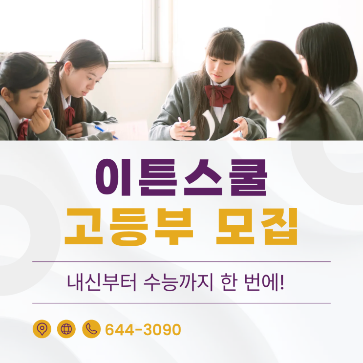 안녕하세요, 아이들의 성적 향상과 올바른 입시 전략을 함께 고민하는 이튼스쿨입니다. 2026학년도를 맞이하여 변화하는 입시 환경과 교육 과정에 발맞춰, 탄탄한 내신 실력을 쌓고 대입의 실질적인 점수를 확보할 고등부 신입생을 모집합니다. 고등 과정은 중등 때와는 다른 깊이 있는 학습 전략과 철저한 준비가 필요합니다. 이튼스쿨만의 검증된 커리큘럼으로 아이들이 목표로 하는 대학에 한 걸음 더 다가갈 수 있도록, 확실한 성적 역전과 상위권 유지를 책임지겠습니다. 모집 대상 고등 1학년: 고등 내신 체제 완벽 적응 및 주요 과목 등급 확보를 위한 기초 확립 고등 2학년: 과목별 변별력이 높아지는 심화 과정 정복 및 내신 고득....... <img src="https://blogthumb.pstatic.net/MjAyNjAxMTFfMzgg/MDAxNzY4MTE0ODUyNzA1.gNTHcMB5hwraeblMEJV6CtiwDPeVQR27o7EML7NfeAAg.kQXvnKlUcTcscIRO0x2ZT2LWkhNckr9VmMJEoSyli6sg.PNG/%C1%A6%B8%F1%C0%BB_%C0%D4%B7%C2%C7%D8%C1%D6%BC%BC%BF%E4_%2811%29.png?type=s3" />