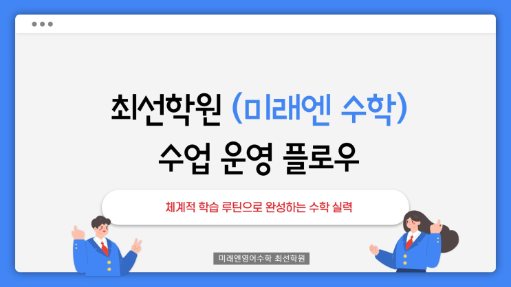안녕하세요:) 미래엔영어수학 최선학원입니다. 오늘은 본 학원 미래엔수학 수업플로우를 공개합니다. 탕정 수학학원, 왜 “수업 방식” 이 중요한가요? “문제를 많이 푸는데 왜 성적이 안 오를까요?” 많은 학부모님들이 가장 많이 하시는 질문입니다. 하지만 수학 성적은 단순 문제풀이 양이 아니라 학습 과정과 학습루틴에서 결정됩니다. 탕정 수학학원 미래엔수학 최선학원은 아이들이 스스로 이해하고 풀어낼 수 있도록 체계적인 수업 플로우를 운영하고 있습니다. 1. 입실부터 시작되는 학습 습관 학원에 들어오는 순간, 수업은 이미 시작됩니다. ✔ 출결 체크 → 시간 관리 습관 형성 ✔ 실내화 착용 → 학습 모드 전환 ✔ 가방....... <img src="https://blogthumb.pstatic.net/MjAyNjAzMzFfMTQ5/MDAxNzc0OTQ1OTg5MTc2.Xj0dJBS_zoEIVKytFHK5EHMMuIAX2ikGaj6HWxSdqLAg.48PE0cHnhLh9wsfq6A3AbYIWyw2fKftkKpHos5becNog.PNG/image.png?type=s3" />