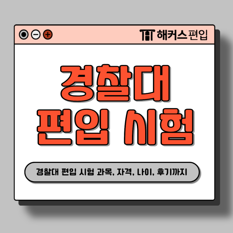 안녕하세요 수험생 여러분, 경찰이라는 진로를 진지하게 고민하다 보면 자연스럽게 경찰대 편입 시험을 한 번쯤 찾아보게 되는 날이 올 텐데요! 최근에는 경찰대학 편입 제도가 자리잡으며 기존 대학을 다니시던 분들도 관심을 가지시곤 하는 것 같습니다. 그래서 오늘은 경찰대 편입 과목부터 지원 자격, 나이, 전형 구조까지 전반적인 정보를 정리해드리는 시간 가져볼게요. 경찰대 편입 강의 활용해 경찰대 편입 시험에 통과한 후기도 후반에 소개해드릴 테니 준비 방향을 설정하시는 데에 도움이 될 거예요. :) 경찰대 편입 과목, 전형 확인 경찰대 편입 시험은 크게 두 가지 전형으로 나뉘어서 진행이 이루어지는데요, 바로 일반대학생 전형....... <img src="https://blogthumb.pstatic.net/MjAyNTEyMTlfMjE2/MDAxNzY2MTE3MDg2NTEx.y7gs86pfGY90y7hpH6H4cscukMoZgicRbhIuPRQScYQg.XC2ohTF1vT2dNGffJjAWxKWrFAwRucxOWFFs4tcTSp4g.PNG/%C1%A6%B8%F1%C0%BB_%C0%D4%B7%C2%C7%D8%C1%D6%BC%BC%BF%E4._-_2025-12-19T130418.244.png?type=s3" />