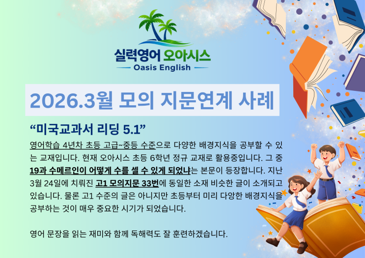 영어는 시켜야 할 것 같은데, 우리 아이에게 어떤 방향이 맞을까요? 영어는 해야 할 것 같은데 무조건 많이 시킨다고 되는 것도 아니고, 그렇다고 아무 기준 없이 보내기에는 불안한 마음이 드실 때가 있습니다. 단어를 외우는 것도 중요하고, 책을 읽는 것도 중요하고, 문제를 푸는 것도 필요합니다. 하지만 장기적으로 아이의 영어 실력을 단단하게 만들려면 그 모든 것이 따로 노는 것이 아니라 연결되어야 합니다. 단어는 단어장 속에서만 끝나지 않고 읽기 속에서 다시 만나야 하고, 읽기는 이해에서 끝나지 않고 쓰기로 이어져야 하며, 그 모든 과정은 결국 아이가 스스로 해내는 힘으로 연결되어야 합니다. 그래서 영어를 고를 때는 단순....... <img src="https://blogthumb.pstatic.net/MjAyNjAzMjlfMjky/MDAxNzc0Nzk1MzMyOTAz.ykYQvu_py88eEpbs18vqMfHTOosV2DuCcckrnM1QtHMg.TP4xKrqY3A8FLwtMjdAITn-6P30apzrp4TN_Bkie_Scg.PNG/image.png?type=s3" />