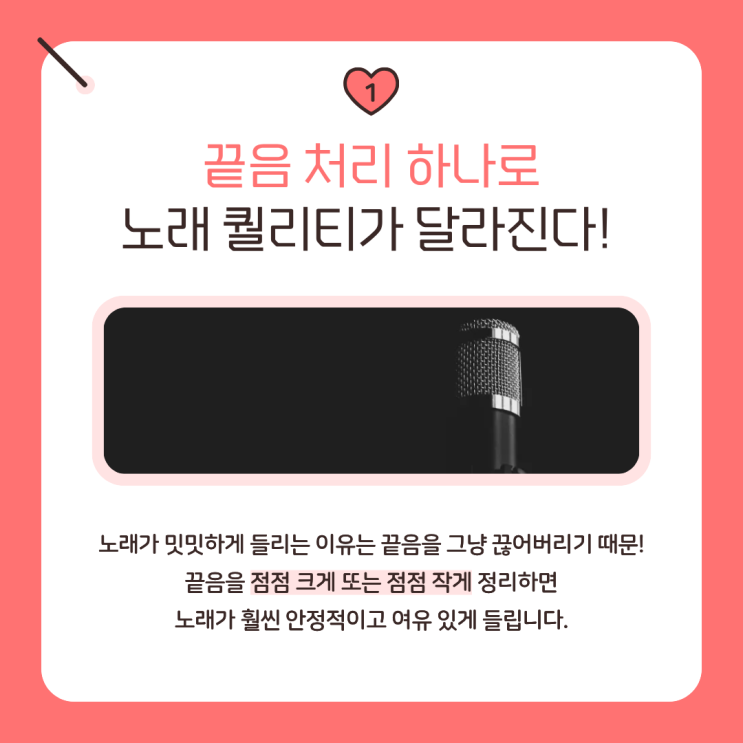 이웃님들! 안녕하세요 :) 나의 노래가 확실하게 달라지는 곳 라실용음악학원 송파잠실점입니다 노래를 못 부르는 건 아닌데... 노래방만 가면 왠지 밋밋하게 들린 적, 한 번쯤 있으셨죠~? 사실 노래방에서는 고급 테크닉보다 '바로 티 나는 포인트'를 아는 게 훨씬 중요해요 조금만 바꿔도 "오, 노래 잘한다!"라는 반응을 듣게 되는 이유죠 ㅎㅎ 그래서 오늘은 송파보컬학원에서 ✨ 초보자도 바로 따라 할 수 있고, 전후 차이가 확실한 노래방 꿀팁 3가지를 정리해봤어요~! 노래방에서 노래 잘하는 법 ① 끝음 처리: 볼륨을 '그대로' 두지 마세요 노래가 아마추어처럼 들리는 가장 큰 이유는 끝....... <img src="https://blogthumb.pstatic.net/MjAyNTEyMjBfMTU3/MDAxNzY2MjM5MDg0Mjcw.k2Q0CAhZJuskKVIpQDTZL101ZcsBE5EUkSUO2RybFkAg.inR5u0H8ddn-2NEjXXixAFOd4NCGnoEzhCfsn_Bmu44g.PNG/1-%B3%EB%B7%A1%B9%E6_%B2%DC%C6%C1_1.png?type=s3" />