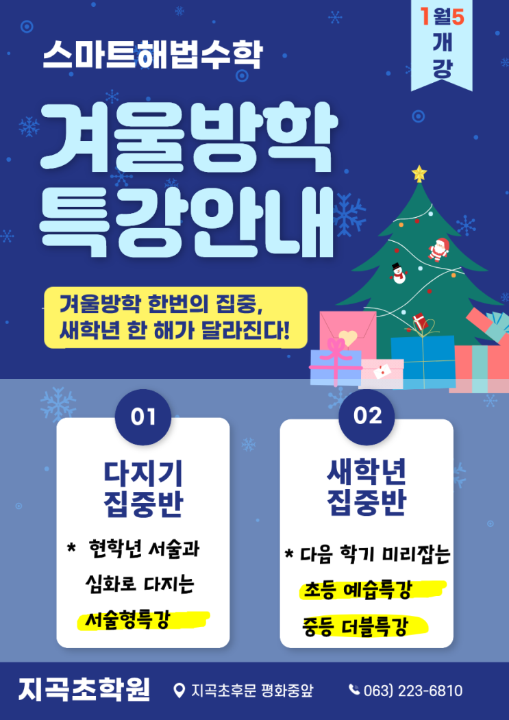안녕하세요 해법수학 지곡초학원입니다 평화동 해법만의 특별한 겨울방학특강 얘들아~~~올 겨울도 특강으로 따뜻한 겨울을 만들자 <img src="https://blogthumb.pstatic.net/MjAyNTEyMjRfMjA0/MDAxNzY2NTA4MjEzNjc1.ekel0BuAp-nESQvrVA7c_e5DpZwhlA6Z0g9J3Guzyi4g.4IXcinoPqd84HxSyORgnNDFZJnmYhFA2uG6QVGdm6cUg.PNG/1766206506929.png?type=s3" />