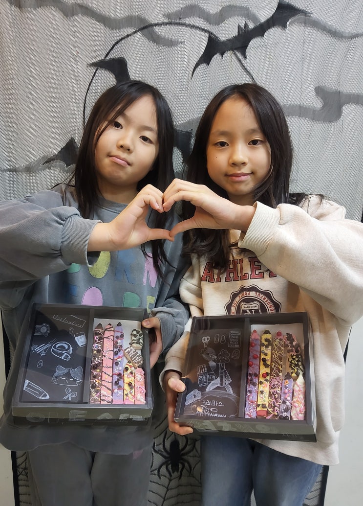 안녕하세요~! 텐즈힐 미술학원 아트스토리 미술 학원입니다^^ 2025년 빼빼로데이 바로바로 연필&지우개 빼빼로 선물세트 만들기! 롱~한 연필 모양 빼빼로와 지우개, 그리고 그걸 담을 나만의 필통 상자예요~ 그냥 똑같이 만드는 게 아니라 아이들 각자 개성이 듬뿍 담겼다는 게 포인트✨ 먼저 연필 빼빼로부터 소개해 볼게요. 길쭉한 웨하스를 연필 모양으로 만들어 초콜릿 코팅을 하고, 그 위에 알록달록한 스프링클, 초코볼, 별 모양 토핑, 눈알 장식까지! “선생님 이건 무지개 연필이에요!” “제 연필은 눈이 있어서 살아있어요!” 이런 말들이 여기저기서 들리는데, 진짜 아이들 상상력이 폭발하는 순간들이었어요 같은 재료....... <img src="https://blogthumb.pstatic.net/MjAyNTEyMjNfMTA0/MDAxNzY2NDU1NzM5ODY3.n2AKmbpCBxX6Z0tocydENVCxo-_m9JtXXeTvcyJ8j1Eg.5hN7nZdDiIFz1otzaKyGR_q8UNwMq0sJ3pba1IVM-nIg.JPEG/KakaoTalk_20251114_181547986_05.jpg?type=s3" />