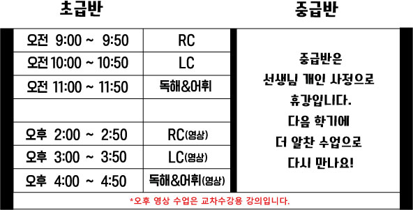 [유앤박어학원] 1&2월 수업 시간표 공지