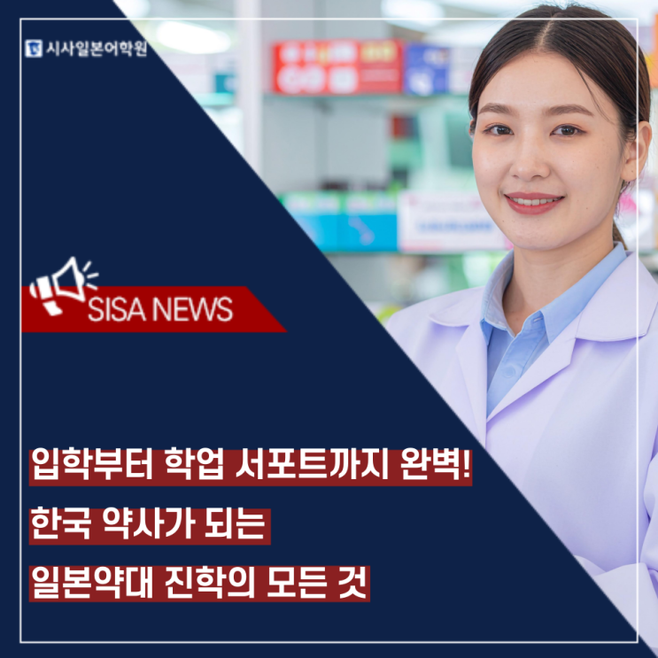 안녕하세요! 시사일본어학원의 미스제이입니다. 약사의 꿈을 안고 열심히 공부하고 있지만, 숨 막히게 높은 국내 약대 입시의 벽 앞에서 고민하고 계신 수험생분들 많으시죠? 워낙 경쟁이 치열하다 보니, 최근에는 시야를 조금 더 넓혀 새로운 돌파구로 해외 약대 진학을 준비하는 분들이 눈에 띄게 늘어나고 있습니다. 일본은 우리나라와 약대 커리큘럼 및 국가자격증 시험 범위가 매우 유사하고, 정원도 훨씬 많아 합격의 기회가 넓게 열려 있거든요! 그래서 오늘은 시사일본어학원이 야심 차게 준비한, 입학부터 어마어마한 장학 혜택까지 싹 다 챙길 수 있는 '시사 x 모두메디 일본약대 진학 프로그램'을 소개해 드릴게요. 입학이....... <img src="https://blogthumb.pstatic.net/MjAyNjAzMTNfMjg3/MDAxNzczMzc5MTU4MzY2.vhsRvmTjDUOiXmY52buxcEFCP7CQ6lrhfN-0FYlSwQcg.LjD6G9nkkdlJk9iPh2JCkhcwImpTZXrIBfd38MQULuog.PNG/%BD%E6%B3%D7%C0%CF_%EC%ED_%F1%E9_-003_%282%29.png?type=s3" />