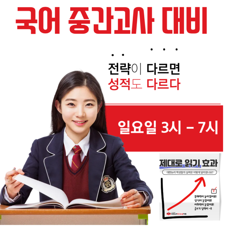 마포국어학원 대한논리 국어 중등 내신 대비, 무제한 내신 대비반 오픈 (일요일 4시간 집중)