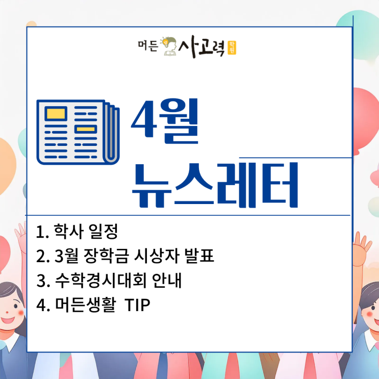 새 학기 적응이 이제서야 되나 싶더니 어느새 4월이 왔네요. 피어나는 벚꽃처럼 화사하게 성장하고 있는 우리 머든 친구들입니다. 4월도 힘차게 시작해 보아요~. <img src="https://blogthumb.pstatic.net/MjAyNjA0MDFfMTMz/MDAxNzc1MDM4OTI3NjU4._qlRqBf5FAG_uKZhVUBkxLwJh9qjqze7YyjwQkdOdYUg.8SqusaNruj86bMPzdOCT_qYweL4lHhLoTx-U-LY6CzQg.PNG/1.png?type=s3" />