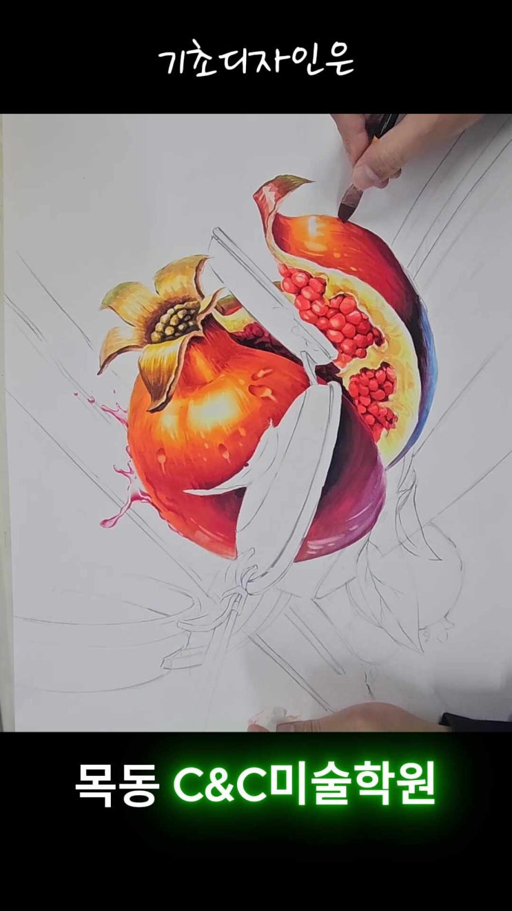 목동 씨앤씨 미술학원입니다. 안녕하세요~! 이번에 예비생들을 위해 기본덩어리와 작은 묘사까지 함께 연습할 수 있는 석류를 그려보았습니다. 석류와 함께, 인공물을 표현해야 하기에, 주제부에서 질감과 형태의 대비를 고려해서 구성을 해 주었습니다. 밝음 부분을 명확히 살리고 중간톤에선 고유색상을 잘 살릴수 있도록 채색을 해줍니다. 반사광의 색변화를 활용하여 한 덩어리 안에서도 대비감을 잘 살려주어 정확한 양감을 표현해 주도록 채색하도록 합니다. 주제부 표현에 대한 스트레스와 채색에 대한 어려움이 있는 학생들 이라면 잘 참고해 보면 좋을것 같습니다.^ ^ 저희 목동 씨앤씨미술학원의 문은 언제나 열려있습니다! 어려움이 있....... <img src="https://phinf.pstatic.net/image.nmv/blog_2026_04_04_2224/xkQvXhvgiq_10.jpg?type=f480x480" />